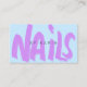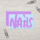 Écrit par brosse Nails inscription en couleur violet. Lettrage écrit avec rouge à lèvres. Texte entièrement personnalisable. Vous pouvez ajouter votre propre nom personnalisé, le titre du poste, l'adresse, le numéro de téléphone, le courriel et les médias sociaux. Le carte de visite élégant est parfait pour les amateurs de clous ou de beauté.