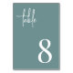 Des cartes numériques simples et chic en turquoise et blanc poussiéreux font une déclaration élégante à votre mariage ou événement. Le design comporte "table" en écriture manuscrite, avec le numéro de table en bas à droite dans la typographie serif intemporelle. Le design se répète de part et d'autre.