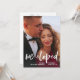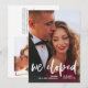 Cette carte simple et moderne d'annonce de fuite pour se marier présente une photo de mariage personnelle sur le devant, avec les mots "nous nous sommes enfuis" en écriture manuscrite décontractée et blanche. Le verso de la carte a de la place pour une autre photo, ainsi que de l'espace pour élaborer sur les détails de votre fuite ou fournir des détails pour une réception ou une célébration après le mariage. Un design fantaisiste et élégant qui est le moyen idéal pour informer vos amis et votre famille que vous êtes mariés !