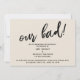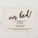 La distinction de cette suite est due au script manuscrit moderne utilisé pour les phrases d'accent. Si vous êtes en position de devoir informer vos invités mariages que vous avez dû changer votre grand rendez-vous, voici une option humoristique. Dans cette pièce, la police de caractères manuscrite a été utilisée pour créer un graphique représentant le mot "notre mauvais!", grand et audacieux. Utilisez les champs modèles pour ajouter vos détails personnels et faire de ce design unique et moderne votre propre. L'arrière - plan peut être changé en n'importe quelle couleur. Veuillez communiquer avec toute demande spéciale ou customiser de l'aide. // 100 //