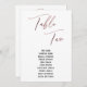 Cette conception simple et élégante comprend "Table Two", rendue dans une police d'écriture moderne et agrémentée d'un effet d'or rose faux métallique. La police des noms peut être modifiée si vous le souhaitez. Comme la couleur arrière - plan. Les détails apparaîtront à l'avant et à l'arrière. // 151 //