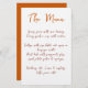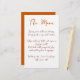 Ce menu mariage décontracté et moderne avec une police qui imite l'écriture manuscrite est parfait pour un mariage d'été, mariage de automne, mariage décontracté ou toute autre célébration où vous souhaitez utiliser des cartes de menu personnalisées. Ce modèle de menu dispose d'un arrière - plan orange brûlé au dos de la carte - toutes les couleurs de cette carte de menu mariage peuvent être customisées dans l'outil de conception! Vous pouvez également modifier le placement du texte.