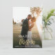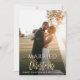 design de carte avec une photo de mariée et mariée et élégante typographie de brosse en faux or. Le texte et les couleurs peuvent être personnalisés.