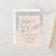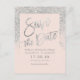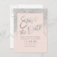 Typographie argentée sur bloc de couleur rose saumon pailleté argenté personnalisable, et chic faire-part de mariage, parfait pour un mariage élégant et stylé,