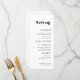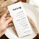 Menu simple, taille : 10,2 cm x 23,5 cm, papier : Signature mat