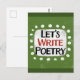 "Écrivons de la poésie" est un design de texte mignon avec une forme d'accent blanc entourée de points blancs texturés.