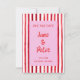 Joueuse, moderne et pleine de personnalité, cette carte Save the Date donne le ton à une célébration qui ne suit pas les règles. Des bandes rouges peintes à la main encadrent un centre rose doux, créant un contraste saisissant qui se sent à la fois romantique et amusant, tandis que les lettrages de style pinceau ajoutent une touche artistique sans effort. C'est la façon parfaite d'annoncer votre rendez-vous avec confiance et couleur, en faisant savoir aux invités que c'est un mariage qu'ils ne voudront pas manquer.