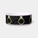 L'image graphique renversante et belle d'un anneau ou d'un solitaire de mariage d'or a coupé la bague de fiançailles de diamant, contre un noir sur l'arrière - plan noir de motif de damassé. Cette image simple pourtant élégante fait un grand accessoire ou cadeau pour un fiançailles, une douche nuptiale, des affaires de bijoutier, ou juste la femme qui aime bling et bijoux. Tout conçoit le © de Copyright www.CuteComfy.com 2012