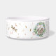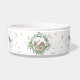Des lapins et des couronnes florales sur les graines de pissenlit. Grande écuelle pour chien/chat. 100% céramique blanche