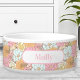 Pawsome aquarelle pastel fleurs de printemps rétro, motif floral, bol d'animal de compagnie avec un nom étiquette, pour la fille fureur la plus mignonne. Personnaliser facilement le texte.- Kate Eden Art