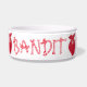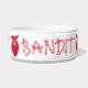 Le bol de chien présente l'illustration originale d'un collier de bandana rouge, avec BANDIT dans une police rouge. Ce design est également disponible sur d'autres produits pour chiens et chats! De nombreux autres produits d'animaux de compagnie illustrés sont également disponibles. Ne vois-tu pas exactement ce que tu cherches ? Contactez Rebecca pour avoir un produit customisé pour vous !