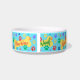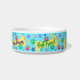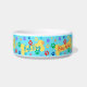This is a fun, colorful bowl for your best friend with multi-colored paws, dog bones and cute words which are customizeable including your pet's name. There is a matching leash and placement.