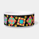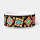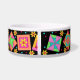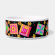 Montrez votre amour de la courtepointe lorsque vous nourrissez votre chien avec ce plat de nourriture pour animaux de compagnie. L'art de la courtepointe d'origine combine des blocs de courtepointe préférés et des blocs uniques aux couleurs vives et dynamiques sur un arrière - plan noir. Personnalisable .