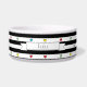 Bol à nourriture pour animaux de compagnie en céramique, avec des rayures noires et blanches et de petits cœurs colorés, plus une bannière pour le nom de votre chien. Choisissez simplement l'option personnaliser pour ajouter le nom de votre toutou ! Trop mignon !