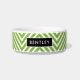 Ajoutez une touche moderne à l'aire de repas de votre animal de compagnie avec ce bol personnalisé qui présente un motif simple en chevron vert et blanc avec un nom d'animal de compagnie personnalisable. Que vous fassiez des achats pour votre propre animal de compagnie ou pour des amis, de la famille, de nouveaux propriétaires d'animaux ou des amoureux de chiens et de chats, ce bol à personnaliser sera un cadeau unique pour quiconque sur votre liste de courses.