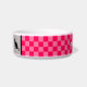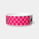 Chat bol de nourriture en céramique blanche a une belle conception de vérificateur rose deux tons et un fond gris pour votre nom d'animal de compagnie. Ajoutez simplement votre nom de chats à l'option personnalisée. Son nom apparaîtra entre les deux graphiques de chat. . HAMbyWhiteGlove.