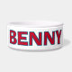 Bol pour animal de compagnie personnalisé rouge avec contour bleu sur fond blanc. Bol pour chien. Chien personnalisé. Bol pour chien personnalisé. Chien mâle. Assiette pour chien.