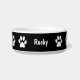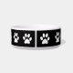 Bol pour petit chien avec empreintes de pattes blanches sur fond noir et un espace pour ajouter le nom de votre chien, ce qui en fait un design de bol pour animal de compagnie élégant. Utilisez le vôtre comme bol pour l'eau, la nourriture ou comme récipient pour toutes les friandises pour chiens.