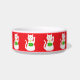 Ce magnifique bol de chat présente une image graphique d'un chat oriental blanc qui a de la chance. Le chat a de beaux yeux dorés et porte un médaillon d'or sur le collier autour du cou. Le chat a des oreilles roses et des chuchotements. Ce mignon petit chaton tient un jeton doré avec une incrustation de jade verte et un message en texte doré qui dit "Bonne chance".