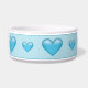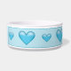 L'illustration de Destei de coeurs bleus dans deux tailles différentes. La couleur arrière - plan est bleu clair et le dessus et le bas ont une fine bordure bleue.