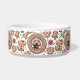 Ce charmant bol de Noël à thème pour chien présente des illustrations de biscuits en pain d'épices dessinées à la main. La pièce maîtresse de cette conception est un grand biscuit rond en pain d'épices qui sert de cadre à la photo de votre chien, entouré de biscuits d'os de chien mignons, de biscuits empreintes de pattes, de biscuits de roue à pinces, et plus encore.