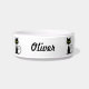 Un beau bol montre un mignon chat noir avec une longue queue bouclée, assis. Ce félin a les yeux verts. Le motif se répète autour du bol. Customisez ou personnalisez le nom, ou retirez-le pour un motif continu. Pour un chat, un chaton, un chaton, un tomcat, un animal ou un autre animal. Ce chat cool a une attitude. Purfection.