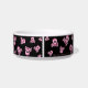 Cette cuvette en céramique faite sur commande d'animal familier a le crâne girly rose punk et les os croisés partout il. On le répète autour du plat. Il est rose avec un arc rose sur le crâne. Le centre a la pièce pour votre nom d'animal familier dans le modèle. Cliquez sur la personnaliser pour changer la couleur ou la police d'arrière - plan.
