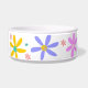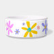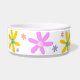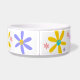Conception de marguerite joyeuse sur votre choix de bol en céramique pour animaux de compagnie. Un graphique lumineux et positif personnalisable avec la couleur d'arrière-plan préférée de votre animal. Ajoutez une touche de couleur vive et positive à la routine quotidienne de votre 'meilleur ami'. Simple et doux... Qu'est-ce que votre toutou pourrait demander de plus ? Les cookies sont vendus séparément...