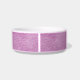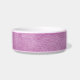 Un bol de nourriture pour animaux de compagnie avec un motif en imitation cuir lilas. Contient de l'espace pour le nom de votre animal.