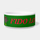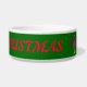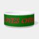 Ce magnifique bol à chien présente un drôle de dessin d'une dinde de Noël aux grands yeux noirs, un petit bec jaune et des plumes de queue qui collent. Les pieds sont orientés dans des directions opposées, ce qui rend la dinde maladroite. La dinde porte un chapeau de Père Noël rouge et blanc et est prête pour Noël.Le texte rouge festif est personnalisable vous permettant de personnaliser ce bol de chien avec le nom de votre chien.
