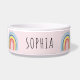 Ce mignon bol à chien dispose d'un adorable arc-en-ciel avec un arrière - plan rose, et de l'espace pour ajouter un nom dans la simple typographie. Le design féminin moderne parfait pour tout amateur d'arc-en-ciel, une excellente façon d'accueillir un nouvel animal !