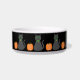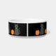 Ce magnifique bol de chat présente l'image art numérique d'un mignon chat gris aux oreilles noires, au nez et à la bouche et aux yeux vert vif. Le chat porte un collier vert avec un charme de pierres précieuses orange vif et doré. Le chat est assis à côté d'un citrouille orange.