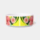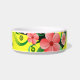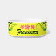 © Sunny Mars Designs. Ce mignon et adorable petit bol d'eau ou de nourriture pour animaux de compagnie présente un design floral jaune, rose et vert de fleurs tropicales d'Hibiscus. Personnalisez-le en ajoutant le nom de votre chien ou chat.