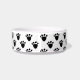 Cette cuvette en céramique faite sur commande de chien ou de chat pour votre animal familier a répéter des images d'empreintes de pattes noires partout le plat. Elle forme un motif géométrique noir et blanc de pawprint d'amusement.