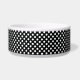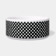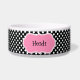 Plat élégant d'aliments pour chiens fait avec une bande noire et blanche de point de polka, autour du plat, et un secteur décoratif rose des textes, au milieu pour votre nom d'animal familier. Le texte fait sur commande noir d'amusement vous permet de customiser avec votre nom d'animal familier, parce que une cuvette personnalisée votre chien peut être fière de. Fait une grande idée de cadeau.