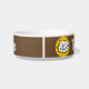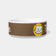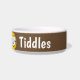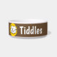 Ajoutez le nom de votre animal de compagnie à ce bol amusant qui présente un dessin animé illustrant un chat souriant. arrière - plan Brown.