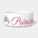 Le bol pour chien présente une illustration originale au marqueur d'un joli diadème de princesse avec des strass et des bijoux roses. Personnalisé pour tout chien ou chat nommé PRINCESSE.