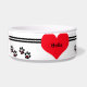 Caractéristiques de conception ce de contemporain qu'une double rayure noire a accentuées par 3 grands coeurs rouges. Le texte noir personnalisable est au centre de chacun des 3 coeurs. Empreintes de pas de chiot avec de petits coeurs rouges à l'intérieur de complet le regard. Cette conception est copyright protégé et ne peut être copiée ou reproduite. Si vous avez besoin d'aide personnalisant cette cuvette ou si vous voudriez des autres conçoivent en fonction du client emploient svp la caractéristique de message d'envoi attachée à ce magasin. Disposition de conception alternative : http://www.zazzle.com/pets_leave_footprints_on_our_hearts-215642196896309588