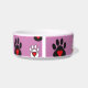 Votre animal de compagnie bien-aimé mangera avec style avec ce bol rose coloré avec des pattes noires et blanches avec le coeur! Personnalisez-le en ajoutant le nom de votre animal !