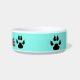 Cette cuvette personnalisée d'animal familier de turquoise a une conception adorable avec quatre empreintes de pattes autour de elle. Cette cuvette a le nom d'animal familier sur l'avant dans de grandes lettres pour son nom. Modèle facile disponible pour suivre simplement l'invite pour écrire votre nom d'animal familier.