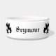 Des symboles de la fleur de lis médiévale gothique royale dorée et dorée entourent un bol de nourriture pour chien. Ajoutez le nom de votre chien.
