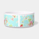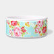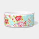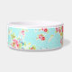 Motif de fleurs rose floral minable chic romantique du cru 80s sur une belle cuvette d'animal familier de chien ou de chat d'arrière - plan de bleus layette d'aqua.