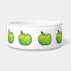 Illustration de Destei d'une pomme verte avec une petite feuille sur la tige. Le design est placé de sorte qu'il tourne autour du bol. Conception sympa pour un animal de compagnie nommé "Apple", par exemple.