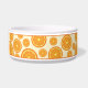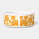 Illustration de Destei d'une tranche de fruits orange en tant que motif. Il y a aussi une zone de texte personnalisable pour un nom. Ce design fruité est idéal pour les animaux de compagnie avec des noms de thème de fruits tels que "Orange", "Clementine" ou "Satsuma", par exemple. Le design est également parfait pour les mois chauds d'été pour ajouter quelques détails décoratifs à l'aire de restauration de n'importe quel animal de compagnie.