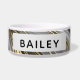 Un bol d'animal avec un design abstrait avec un motif minéral géode agate. L'or, le gris, le blanc et le noir tourbillonnent ensemble formant d'élégantes vagues de couleur. Un rectangle gris clair superposé avec votre texte à l'intérieur. L'élégance moderne et raffinée.