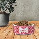 Gâtez votre précieux animal avec ce gingham rouge intemporel personnalisé avec des empreintes de pattes sur la gamelle pour animaux ! Personnalisez-le avec le nom de votre chien dans l'os.