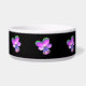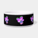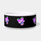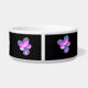 Ce magnifique bol d'animal de compagnie présente une photo d'une fleur sauvage de Pansy. La photo a été colorée artificiellement, ce qui donne un sansy avec des pétales violets rosâtres brillants avec des pétales à pointes vertes et un centre bleu profond. L'arrière - plan est noir pour faire ressortir la fleur.