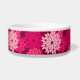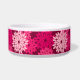 Pet bol dans une prise moderne sur un imprimé kimono floral japonais traditionnel - fleurs stylisées dans les nuances de lumière à corail rose profond et fuchsia sur un arrière - plan bordeaux / marron profond