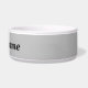 Gamelle que vous pouvez personnaliser avec le nom de votre animal sur un fond gris. Vous pouvez également modifier le style de police, la couleur de la police et la couleur de fond dans l'outil de conception. Veuillez vérifier l'apparence après avoir saisi le nom de votre animal. Si l'apparence vous convient, vous pouvez passer votre commande maintenant. Si vous devez redimensionner ou repositionner le nom de votre animal, veuillez ajuster dans l'outil de conception.