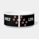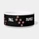 Un unique, plat d'aliments pour chiens d'amusement pour les amoureux des animaux qui considèrent des animaux familiers une partie de la famille. L'arrière - plan noir avec le faux a gravé l'aluminium en refief, empreintes de pattes roses à la mode d'or. Chaque section montre une qualité bien connue du meilleur ami de l'homme. De gauche à droite elle lit loyal, l'amusement, le copain, et la famille. Le centre est réservé pour le nom de votre propre chien pour un bol personnalisé d'aliments pour chiens. Grand cadeau pour un animal familier aimé ou un amoureux des chiens et un propriétaire ! Sentez-vous libre pour changer les traits de chienchien énumérés avec des traits pour votre propre bébé de fourrure ou un message customisé. Visitez notre magasin de Zazzle.com/angela65* pour plus de cadeaux pour des animaux familiers et des cadeaux personnalisés d'amoureux des animaux.